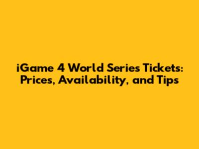 IGame 4 World Series Tickets: Prices, Availability, And Tips