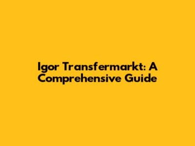 Igor's Transfermarkt Journey: All You Need To Know