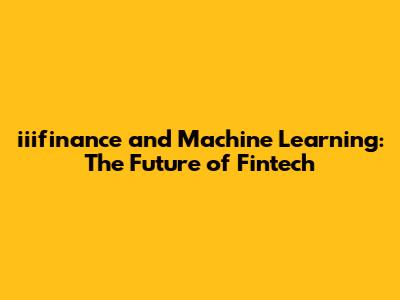 Iiifinance & Machine Learning: The Future Of Fintech