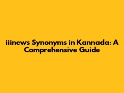Iiinews Synonyms In Kannada: A Comprehensive Guide