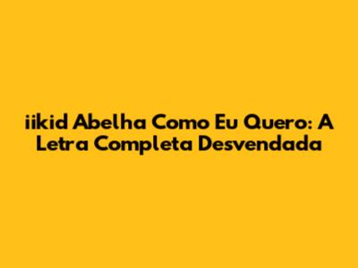 Iikid Abelha Como Eu Quero Letra Completa
