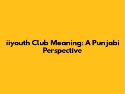 IiYouth Club Meaning: A Punjabi Perspective