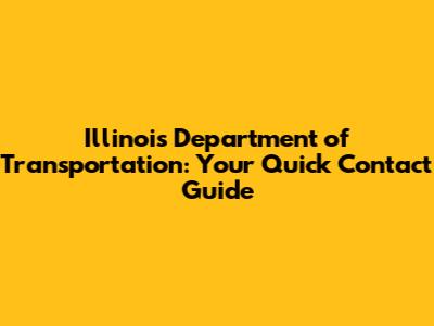 Illinois Department Of Transportation: Your Quick Contact Guide