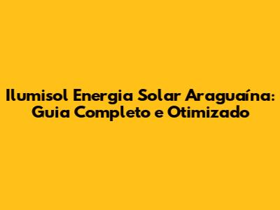 Ilumisol Energia Solar Araguaína: Guia Completo E Otimizado