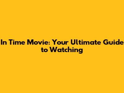 In Time Movie: Your Ultimate Guide To Watching