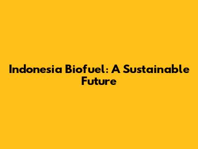 Indonesia Biofuel: A Sustainable Future