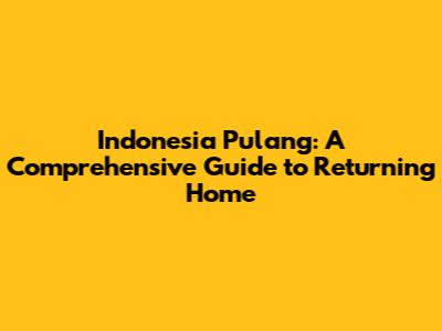 Indonesia Pulang: Your Guide To Moving Back Home
