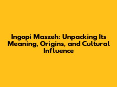 Ingopi Maszeh: Meaning, Origins & Cultural Impact