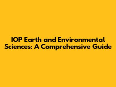 IOP Earth & Environmental Sciences: All You Need To Know