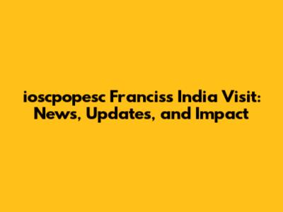 Ioscpopesc Francis's India Visit: News, Updates, And Impact