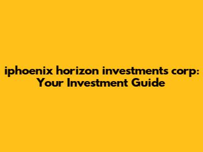 Hey everyone, let's dive into iphoenix horizon investments corp! For those of you just starting out or even seasoned investors, understanding this company is key. We're going to break down everything from what they do, their investment strategies, and how you can potentially get involved. Consider this your go-to guide for all things iphoenix horizon investments corp. So, grab your coffee, get comfy, and let's explore this exciting world of investments together!