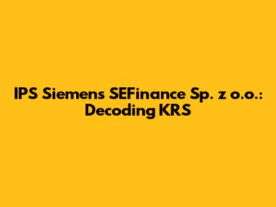 Hey there, finance enthusiasts! Ever stumbled upon "IPS Siemens SEFinance Sp. z o.o." and wondered what it's all about? Or maybe you've encountered "KRS" and felt a bit lost? Well, you're in the right place! We're going to break down IPS Siemens SEFinance Sp. z o.o. and its connection to the Krajowy Rejestr SÄ…dowy (KRS), or National Court Register, in a way that's easy to understand. Think of this as your friendly guide to navigating the sometimes-complex world of business registrations and financial entities. Let's dive in!