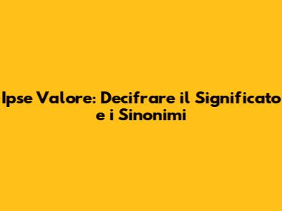 Ok, ora passiamo ai sinonimi di "ipse valore". Trovare parole che esprimano lo stesso concetto può aiutarci a comprendere meglio questa espressione e a utilizzarla in modo più efficace. Ecco alcuni sinonimi che possono aiutarci: