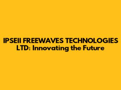 IPSEII FREEWAVES TECHNOLOGIES LTD: Innovating The Future