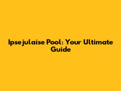 Ipsejulaise Pool: Your Ultimate Guide
