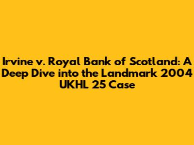 What's up, legal eagles and curious minds! Today, we're going to dissect a really important case that shook things up in the UK's legal landscape: Irvine v. Royal Bank of Scotland plc [2004] UKHL 25. This isn't just some dusty old legal document; it's a case that guys, and gals, in the legal profession β and frankly, anyone dealing with contracts and negligence β should know about. We're going to break down exactly what happened, why it matters, and what lessons we can all take away from this landmark decision. So, grab your favorite beverage, get comfy, and let's dive into the nitty-gritty of this fascinating legal battle. We'll be exploring the core issues, the arguments presented, the House of Lords' final verdict, and the ripple effects this case has had since 2004. It's a complex one, but we'll make it as clear and engaging as possible, promise!