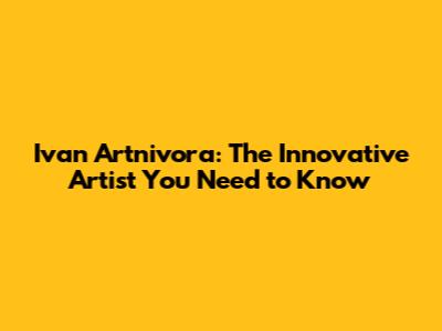 Ivan Artnivora: The Innovative Artist You Need To Know