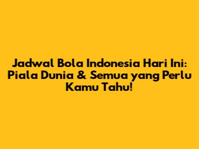 Guys, sepak bola itu emang nggak ada matinya, ya kan? Apalagi kalau udah nyangkut Piala Dunia! Nah, buat kalian yang nggak mau ketinggalan aksi seru dari timnas Indonesia atau bahkan jadwal pertandingan seru lainnya, kalian datang ke tempat yang tepat nih. Di artikel ini, kita bakal kupas tuntas tentang jadwal bola Indonesia hari ini, mulai dari Piala Dunia yang bikin deg-degan sampai pertandingan-pertandingan seru lainnya yang sayang banget kalau dilewatkan. Jadi, siap-siap catat jadwalnya, pasang alarm, dan siap-siap buat teriak-teriak mendukung tim kesayangan kalian!