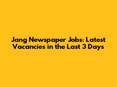 Jang Newspaper Jobs: Latest Vacancies In The Last 3 Days