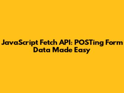 JavaScript Fetch API: POSTing Form Data Made Easy