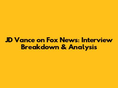 JD Vance On Fox News: Interview Breakdown & Analysis