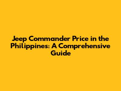 Jeep Commander Price In The Philippines: A Comprehensive Guide