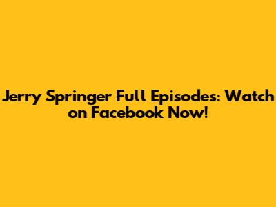 Uncovering Jerry Springer Full Episodes on Facebook