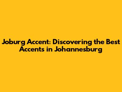 Joburg Accent: Discovering The Best Accents In Johannesburg