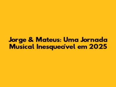 Com certeza, 2025 serĂĄ um ano incrĂvel para Jorge & Mateus e seus fĂŁs. Preparem-se para muita mĂșsica, emoção e momentos inesquecĂveis! A dupla estĂĄ a todo vapor, pronta para mais um ano de sucesso, mostrando que a paixĂŁo pela mĂșsica e a dedicação aos fĂŁs sĂŁo a chave para uma carreira brilhante. Fiquem ligados nas novidades, porque Jorge & Mateus prometem! A espera Ă© grande, mas a certeza Ă© maior ainda: vem muita coisa boa por aĂ! E aĂ, animados para o que Jorge & Mateus estĂŁo preparando? đ