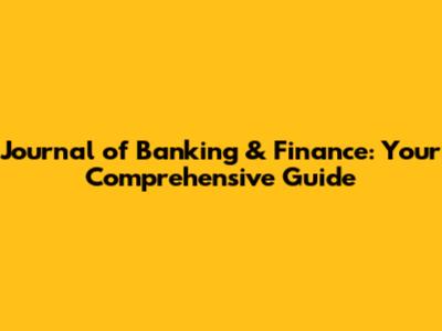 Journal Of Banking & Finance: Your Guide