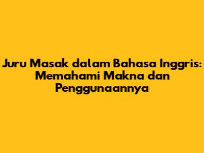 Memahami Arti Juru Masak dalam Bahasa Inggris