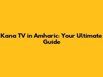 Kana TV In Amharic: Your Ultimate Guide