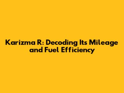 Karizma R: Real-World Mileage & Fuel Efficiency