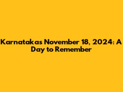 Karnataka's November 18, 2024: A Day To Remember