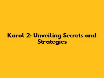 Karol 2: Unveiling Secrets And Strategies