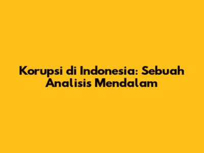 Korupsi Di Indonesia: Sebuah Analisis Mendalam