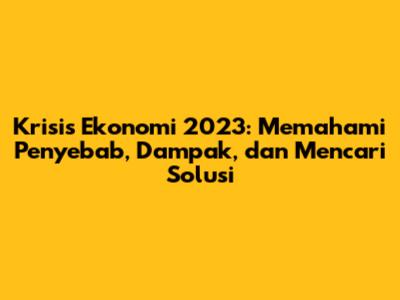 Krisis Ekonomi 2023: Penyebab, Dampak, Dan Solusi
