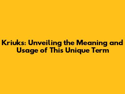 Kriuks: Unveiling The Meaning And Usage Of This Unique Term