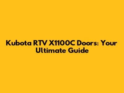 Kubota RTV X1100C Doors: Where To Find & What To Know