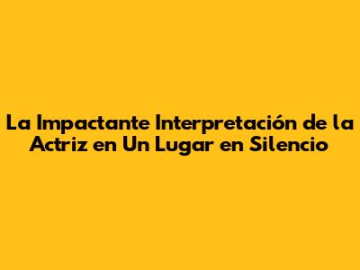 ¡Hola a todos los amantes del cine! Hoy vamos a sumergirnos en el fascinante mundo de 'Un Lugar en Silencio' y, en particular, en la sobresaliente actuación de la actriz principal. Prepárense para explorar cómo esta película no solo nos mantiene al borde del asiento con su suspense, sino que también nos regala una interpretación que merece ser analizada y aplaudida. ¿Están listos para descubrir los secretos detrás de la actuación que cautivó a audiencias de todo el mundo? ¡Vamos allá!