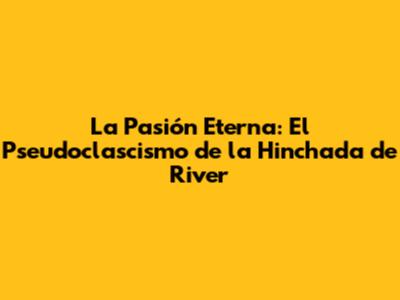 La Pasión Eterna: El Pseudoclascismo De La Hinchada De River