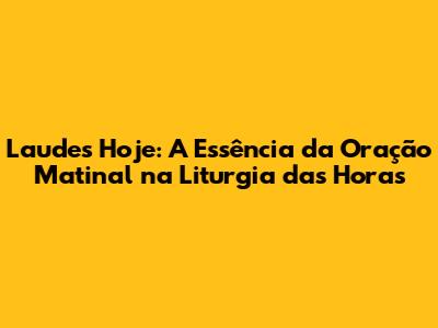 Laudes Hoje: A Oração Matinal Da Liturgia Das Horas