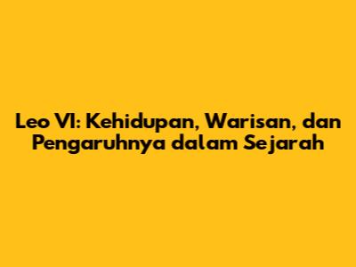 Leo VI, sosok yang dikenal sebagai Paus dengan masa jabatan yang relatif singkat namun sarat makna, telah meninggalkan jejak yang signifikan dalam sejarah Gereja Katolik Roma. Sebagai seorang pemimpin gereja, ia menghadapi berbagai tantangan politik dan teologis yang membentuk arah perkembangan agama Kristen di Eropa. Dalam artikel ini, kita akan menjelajahi biografi Leo VI, menganalisis sejarah kepausan pada masanya, dan menggali pengaruh Leo VI terhadap Gereja Katolik Roma dan dunia secara keseluruhan.