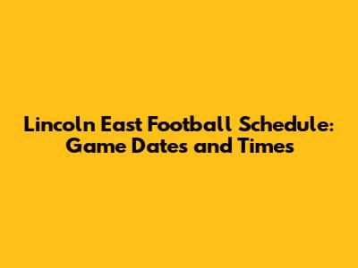 Lincoln East Football Schedule: Game Dates And Times