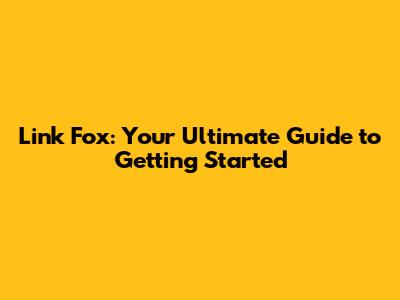 Link Fox: Your Guide To Getting Started