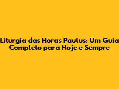 Liturgia Das Horas Paulus: Guia Completo E Otimizado