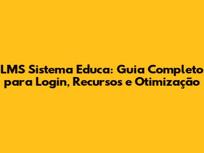LMS Sistema Educa: Login, Recursos E Otimização