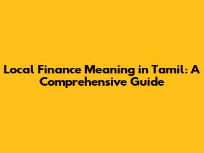 Local Finance Meaning In Tamil: A Comprehensive Guide
