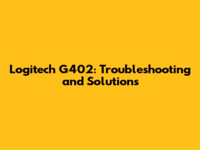 Logitech G402: Troubleshooting And Solutions