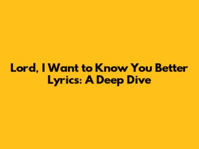 Lord, I Want To Know You Better Lyrics: A Deep Dive